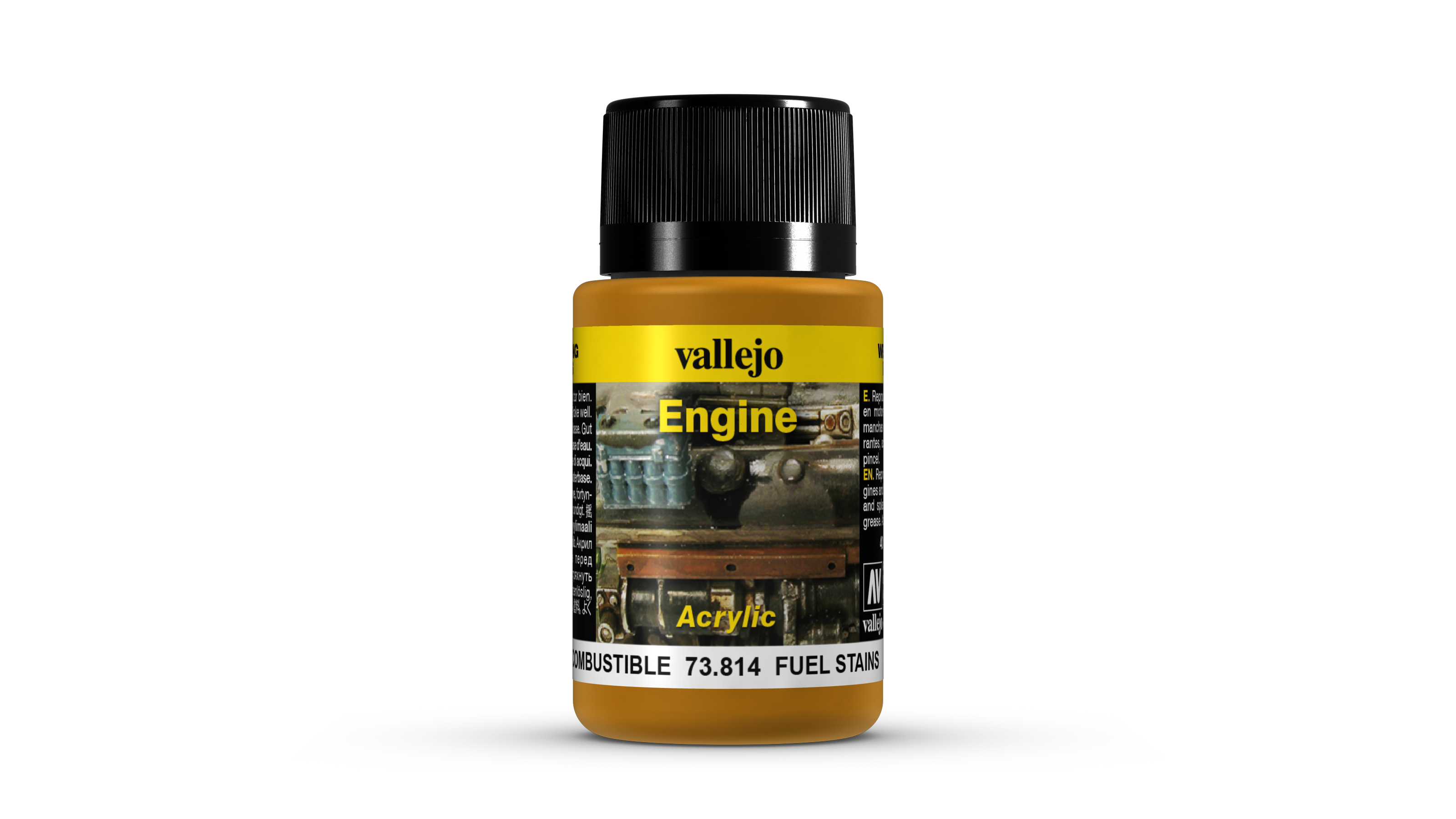 Los motores tienen muchas partes móviles (ruedas, ejes, trenes de rodaje y bisagras) sometidas a tracción y desplazamientos que deben ser lubricados para su correcto uso y funcionamiento. Además un motor a combustión interna precisa de carburante y el polvo y la suciedad se acumulan sobre el mismo formando parte de ese contexto mecánico y dinámico. La gama Engine Effects ofrece al modelista una serie de referencias para reproducir las manchas de combustible, el aceite derramado (dejando un rastro de gotas sobre las planchas del carro o en el polvo del camino), las marcas en la caja del camión de los bidones cargados de petróleo,y la suciedad acumulada en el compartimento motor, para aportar el toque de realismo adecuado al modelo.